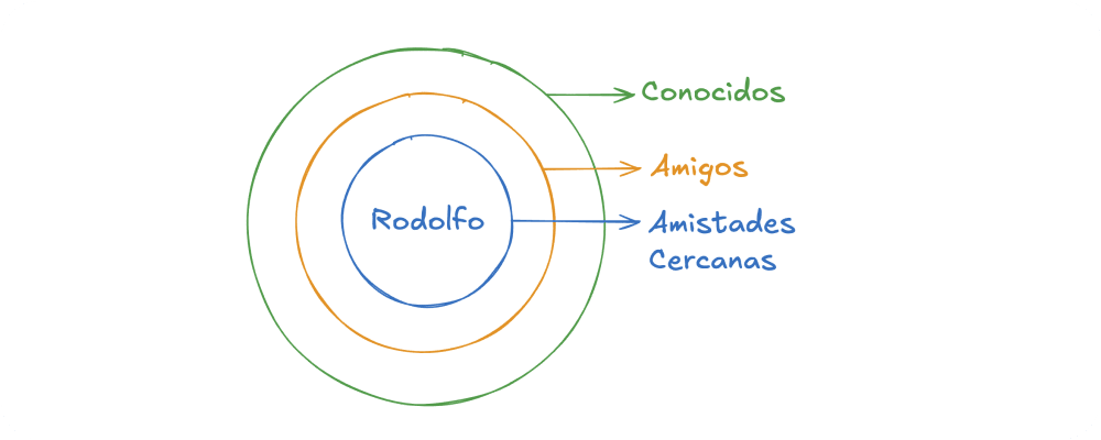 - Amistades cercanas: Personas con las que comparto el día a día y tenemos mucha confianza y multiples conexiones.